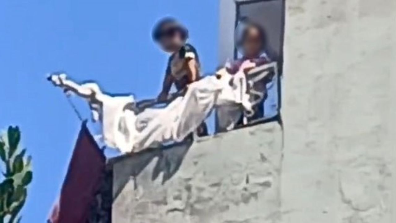 Samsun’un Bafra ilçesinde bir binanın 4’ncü katındaki balkonundan sarkan çocuklar çevredekileri tedirgin etti.