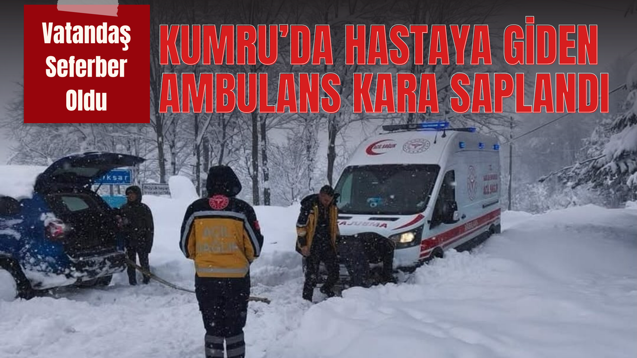 Ordu’nun Kumru ilçesinde hastaya gitmek üzere yola çıkan ambulans, yoğun kar yağışı nedeniyle yolda mahsur kaldı.