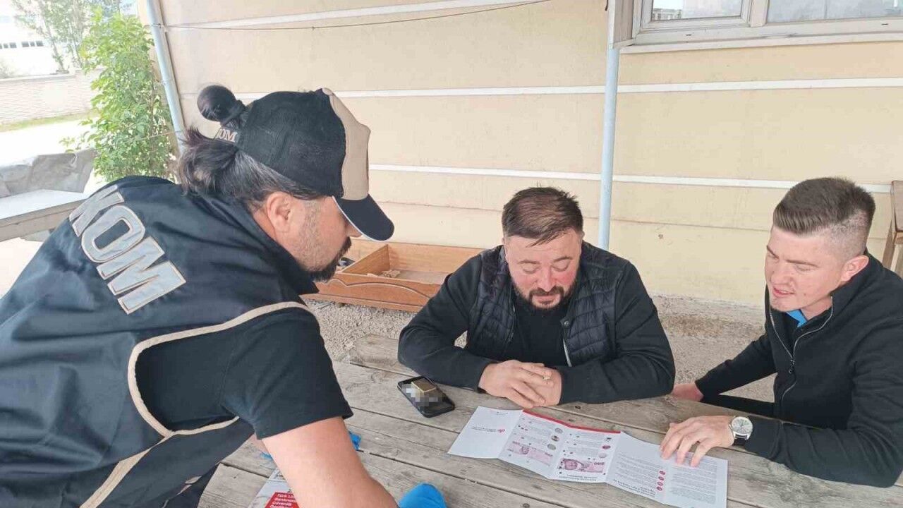 Kurban Bayramı’na sayılı günler kala Bolu’da, hayvan satışının yapıldığı kurban pazarlarında sahte para ile dolandırıcılık olaylarının önüne geçmek amacıyla bilgilendirme İl Emniyet Müdürlüğü Kaçakçılık ve Organize Suçlarla Mücadele (KOM) Şube Müdürlüğü ekipleri tarafından çalışması gerçekleştirildi. KOM Şube Müdürlüğü ekipleri, kurbanlık satan vatandaşları sahte para konusunda bilgilendirerek, dikkat edilmesi gereken hususlar hakkında uyarılarda bulundu. Ekipler, sahte paranın nasıl ayırt edileceğini uygulamalı olarak anlatarak satıcılara broşür dağıttı. Vatandaşların mağduriyet yaşamaması için dikkatli olmaları istenirken, şüpheli durumlarda vakit kaybetmeden emniyet birimlerine ihbarda bulunmaları gerektiği vurgulandı.