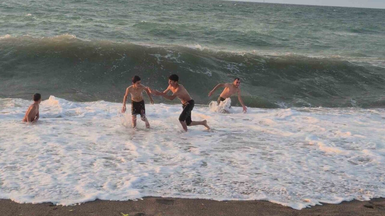 İlk defa denize gelen 10 yaşındaki Şehmuz Atılmış ise; "Dalgalı ama denizin tadını çıkartıyoruz. İlk defa denize geldim. Dalgalardan korkmuyorum" dedi.