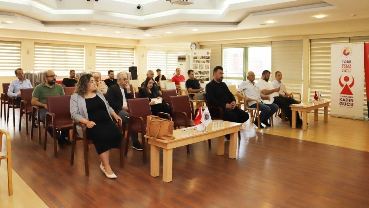 DTSO hizmet binasında gerçekleştirilen toplantıya; TSO Meclis Üyesi ve 3. Meslek Komitesi Üyesi Rasim Mercan, Hasan Mutlu, 3. Meslek Komitesi Başkan Yardımcısı Fikret Eryakalı’nın yanı sıra Düzce’de faaliyet gösteren mobilya ve orman ürünleri sektöründen çok sayıda firma temsilcisi katılım sağladı. Projede danışmanlık hizmeti sunan firma yetkilileri de toplantıda hazır bulundu.