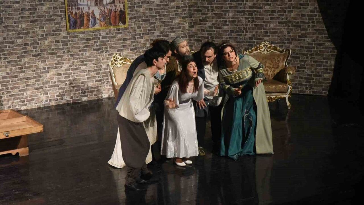 İstiklal Konferans Salonu’nda Sahne Sanatları Bölümü Dr. Öğr. Üyesi Hatice Şaşmaz’ın yönetmenliğini üstlendiği tiyatro oyunu, Nedyalko Yordanov’un kaleme aldığı ve Shakespeare’in ölümsüz eseri Hamlet’ten uyarlandı. Hamlet’in trajik öyküsünü merkezine alan oyunda, Prens Hamlet’in amcası Claudius’un kralı öldürüp tahta geçmesi ve Hamlet’in annesiyle evlenmesiyle başlayan olaylar dizisi, öğrencilerimiz tarafından sahneye taşındı.