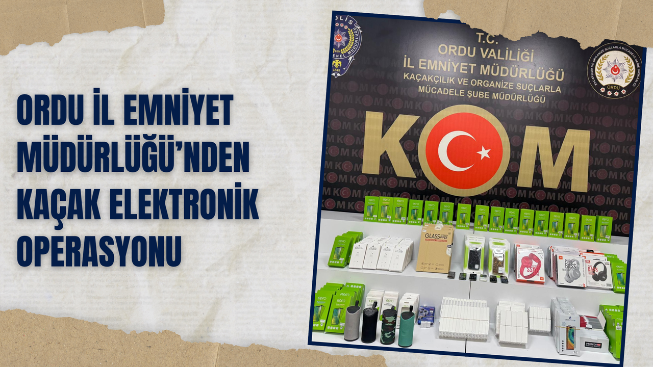 Ordu İl Emniyet Müdürlüğü Kaçakçılık ve Organize Suçlarla Mücadele (KOM) Şube Müdürlüğü ekiplerince 04 Haziran 2025 tarihinde Altınordu ilçesinde üç adrese düzenlenen operasyonlarda önemli miktarda kaçak elektronik eşya ele geçirildi.