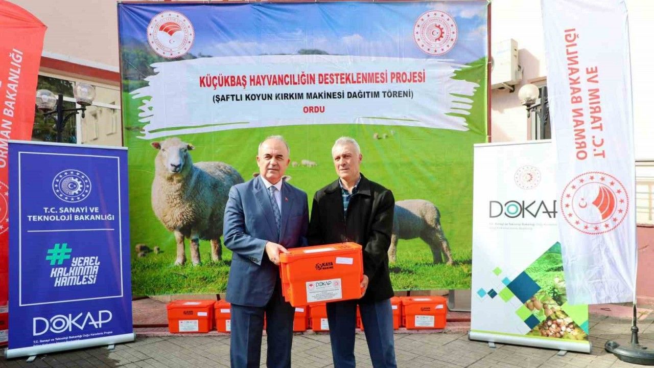 Ordu’da ’Küçükbaş Hayvancılığın Desteklenmesi Projesi’ kapsamında 150 koyun yetiştiricisine yüzde 70 hibe destekli şaftlı koyun kırkım makinesi verildi.