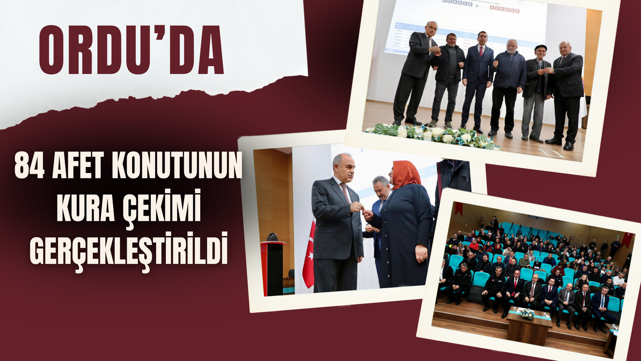 Törende ilimiz genelinde meydana gelen afetler nedeniyle yapımı tamamlanan Aybastı ilçesi Çakırlı Mahallesi (36), Gölköy ilçesi Sarıca Mahallesi (30), Ünye ilçesi Göbü Mahallesi (12) ve Ünye ilçesi Yunus Emre Mahallesi (6) olmak üzere toplam hak sahiplerine 84 adet afet konutunun noter huzurunda kurası çekilerek, hak sahiplerine anahtar teslimi gerçekleştirildi.