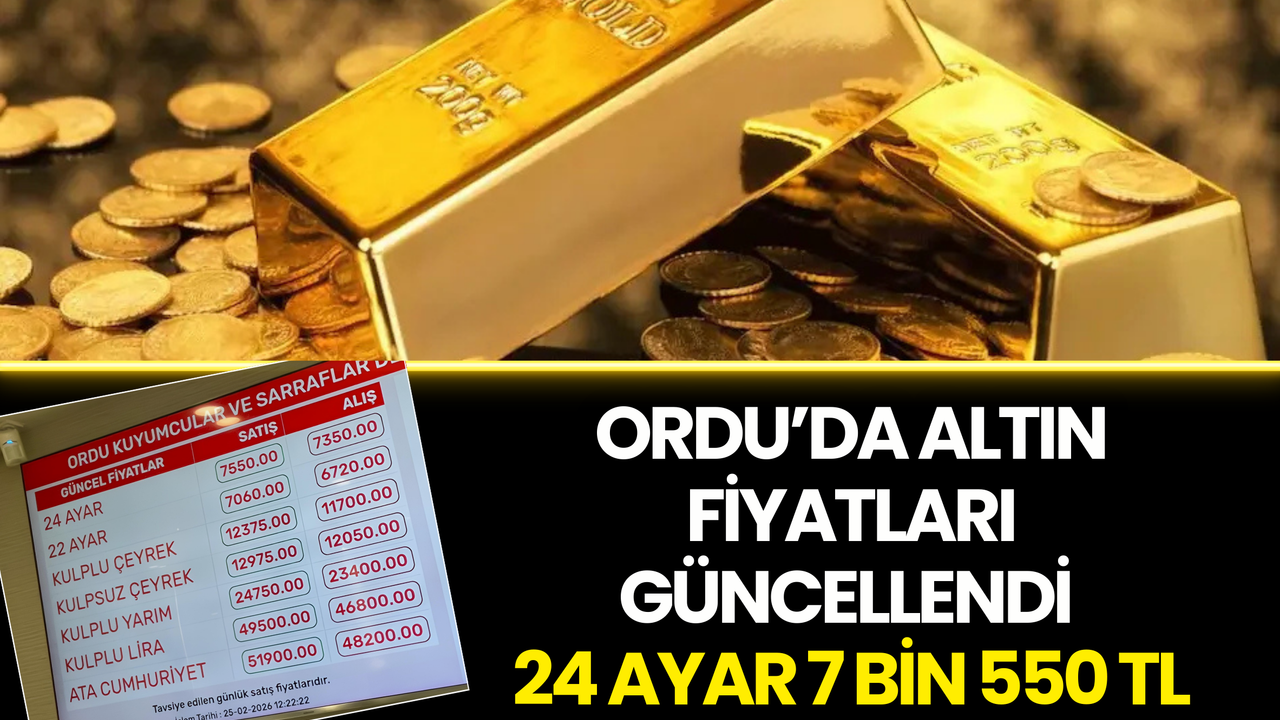 Ordu Kuyumcular ve Sarraflar Derneği tarafından güncel altın fiyatları açıklandı. 25 Şubat 2026 Çarşamba günü saat 12.22 itibarıyla geçerli olan listeye göre altın fiyatlarında yüksek seviyeler dikkat çekti.