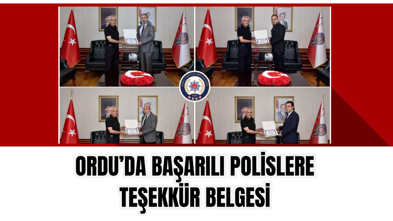 Ordu İl Emniyet Müdürlüğü’nde görev yapan dört polis memuru, üstün gayret ve başarıları nedeniyle ödüllendirildi. İl Emniyet Müdürü Ahmet Acar, düzenlenen törenle polisleri Teşekkür Belgesi ile onurlandırarak çalışmalarını takdir etti.