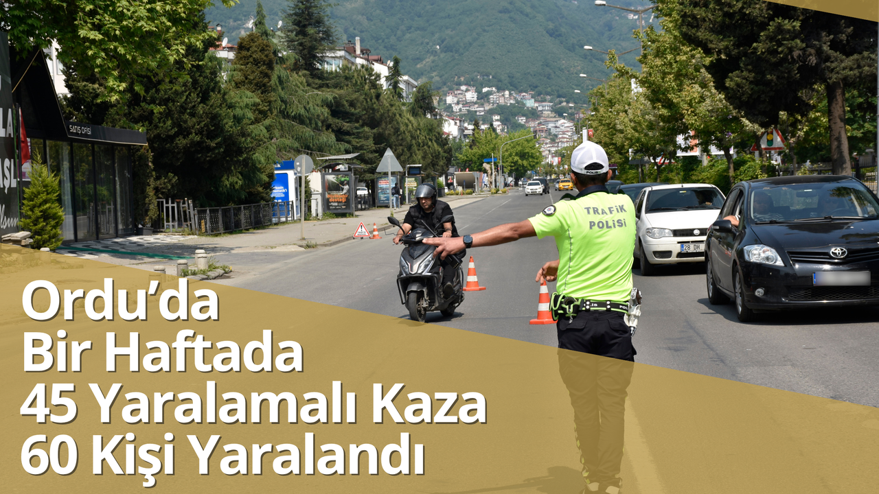Ordu’da 09-15 Haziran 2025 tarihleri arasında polis sorumluluk bölgesinde meydana gelen 45 ayrı trafik kazasında toplam 60 kişi yaralandı. Trafik kazalarının önlenmesi amacıyla il genelinde yapılan yoğun denetimlerde ise binlerce araç kontrol edildi, yüzlerce sürücüye ceza kesildi.