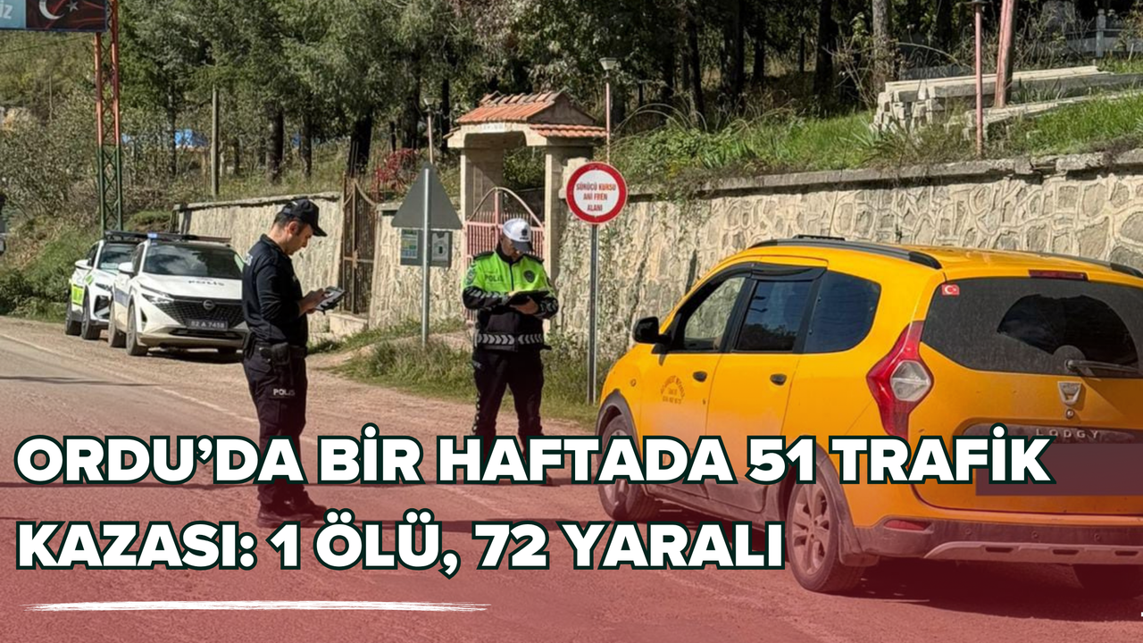 Ordu’da 13-19 Ekim 2025 tarihleri arasında polis sorumluluk bölgesinde meydana gelen trafik kazalarında 1 kişi hayatını kaybetti, 72 kişi yaralandı.