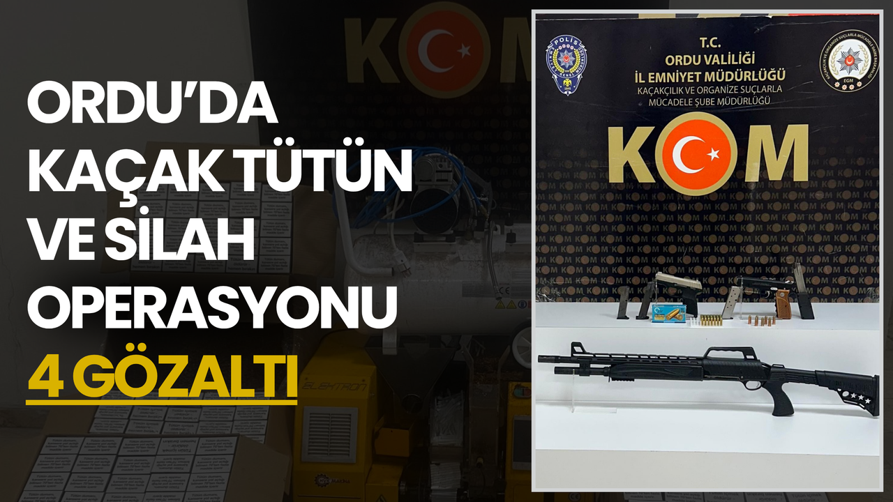 Ordu İl Emniyet Müdürlüğü Kaçakçılık ve Organize Suçlarla Mücadele (KOM) Şube Müdürlüğü ekiplerince tütün ve silah kaçakçılığına yönelik düzenlenen operasyonlarda çok sayıda kaçak ürün ve silah ele geçirildi.
