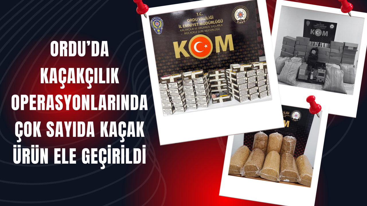 Ordu İl Emniyet Müdürlüğü Kaçakçılık ve Organize Suçlarla Mücadele (KOM) Şube Müdürlüğü ekipleri, 4-9 Ağustos 2025 tarihleri arasında gerçekleştirdikleri operasyonlarda piyasa değeri yüz binlerce lira olan kaçak ürün ele geçirdi.