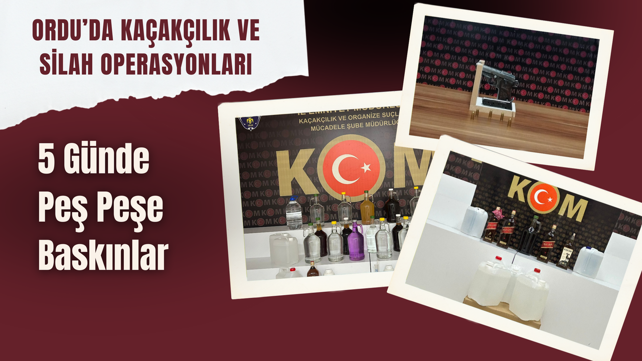 Ordu İl Emniyet Müdürlüğü Kaçakçılık ve Organize Suçlarla Mücadele birimleri, 2-5 Aralık 2025 tarihleri arasında kent genelinde kaçakçılık faaliyetlerine yönelik peş peşe operasyonlar düzenledi. Operasyonlarda kaçak makaron, yapma alkol, silah ve çok sayıda mühimmat ele geçirilirken toplam 8 şüpheli hakkında işlem yapıldı.