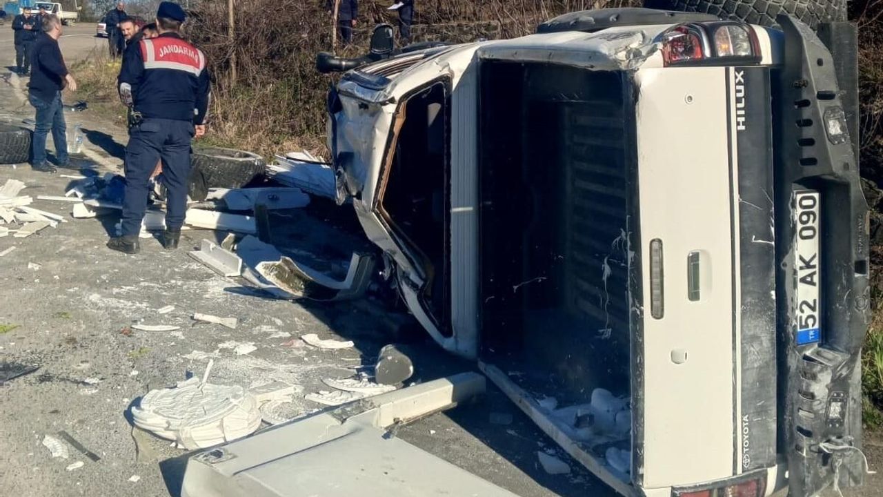 Kaza, ilçeye bağlı İnkur Mahallesi’nde meydana geldi. Edinilen bilgiye göre, Metin Türk’ün (30) kullandığı 52 AK 090 plakalı kamyonet aks kesmesi sonucu kontrolden çıkarak takla attı, ardından yolun kenarındaki kaldırıma çarptı. Kaza nedeniyle sürücü ağır yaralanırken, sürücünün annesi Emine Türk (53) ile araçta bulunan Dursun C. (38) ile Ali C. (35) yaralandı. Yaralılar olay yerindeki ilk müdahalelerinin ardından ambulans ile Ünye Devlet Hastanesi’ne kaldırıldı. Ağır yaralı olarak hastaneye kaldırılan sürücü Metin Türk, yapılan tüm müdahalelere rağmen hayatını kaybetti.