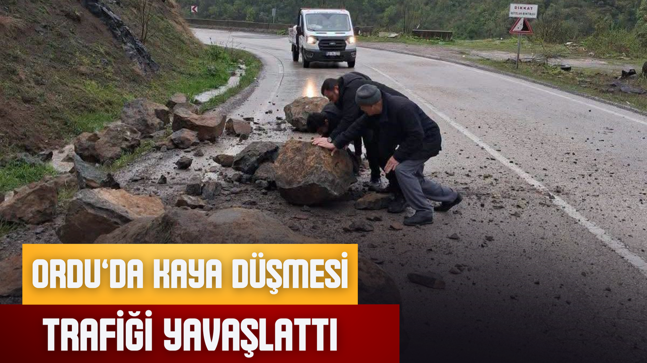 Ordu’nun Aybastı ile Fatsa ilçelerini birbirine bağlayan karayolunda yamaçtan kopan kaya parçaları yola düştü. Olay nedeniyle yolun bir bölümü ulaşıma kapanırken, trafik akışı kontrollü olarak sağlanmaya başlandı.