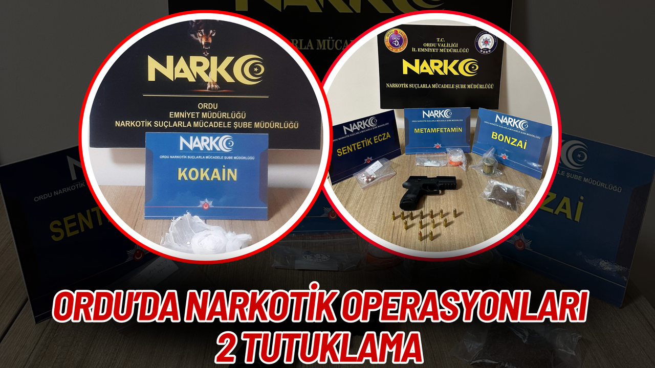 Ordu’da Narkotik Suçlarla Mücadele Şube Müdürlüğü ekiplerince 13 ve 15 Mart 2026 tarihlerinde gerçekleştirilen iki ayrı operasyonda uyuşturucu madde ele geçirilirken, şüpheliler hakkında adli işlem başlatıldı.
