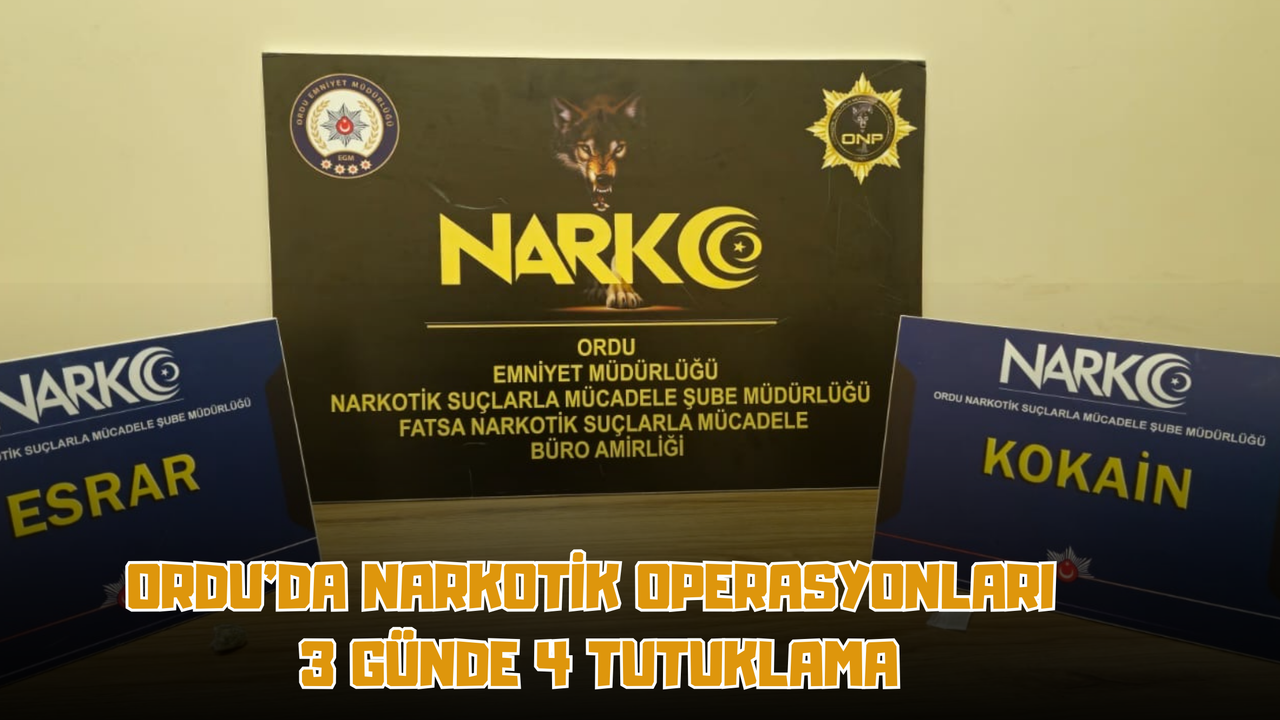 Ordu İl Emniyet Müdürlüğü Narkotik Suçlarla Mücadele Şube Müdürlüğü ekipleri tarafından yürütülen çalışmalar kapsamında 2, 3 ve 4 Mart 2026 tarihlerinde üç ayrı operasyon gerçekleştirildi.