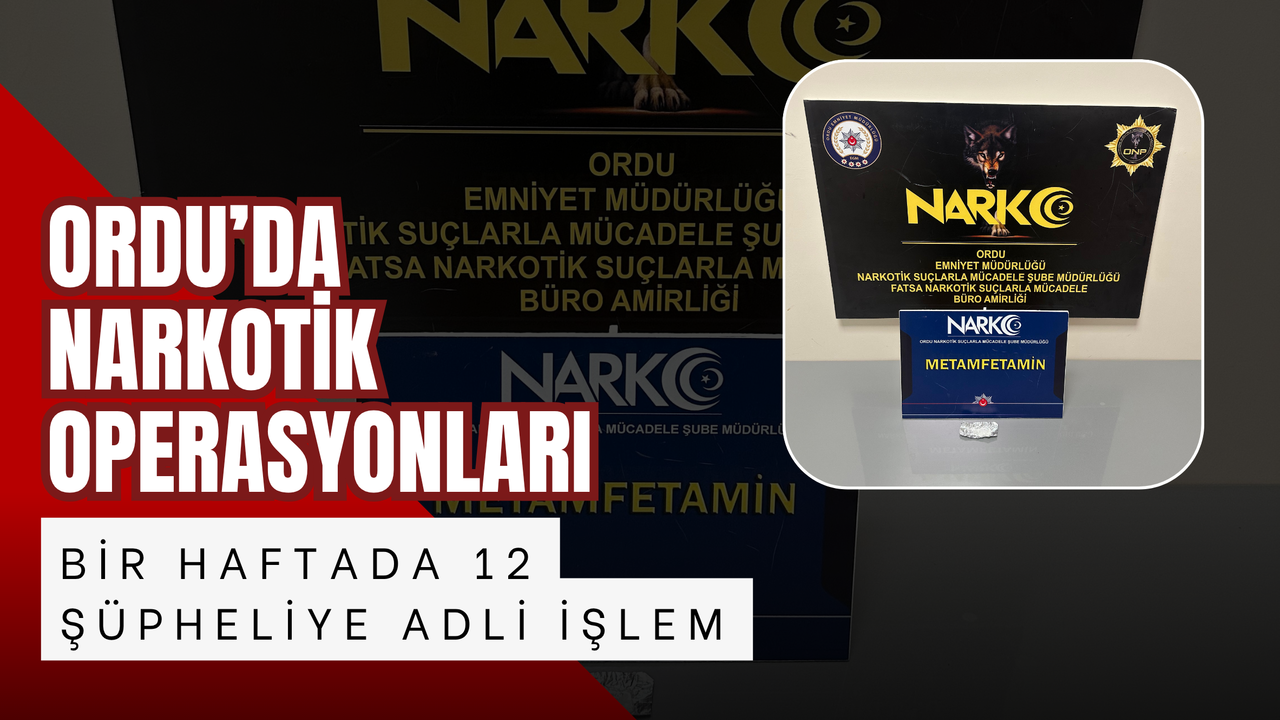 Ordu İl Emniyet Müdürlüğü Narkotik Suçlarla Mücadele Şube Müdürlüğü ekiplerince 09-14 Haziran 2025 tarihleri arasında gerçekleştirilen denetim ve operasyonlarda, uyuşturucu madde kullandığı tespit edilen 12 kişi hakkında adli işlem başlatıldı. Bir kişi ise uyuşturucu madde ticareti yaptığı gerekçesiyle tutuklanarak cezaevine gönderildi.