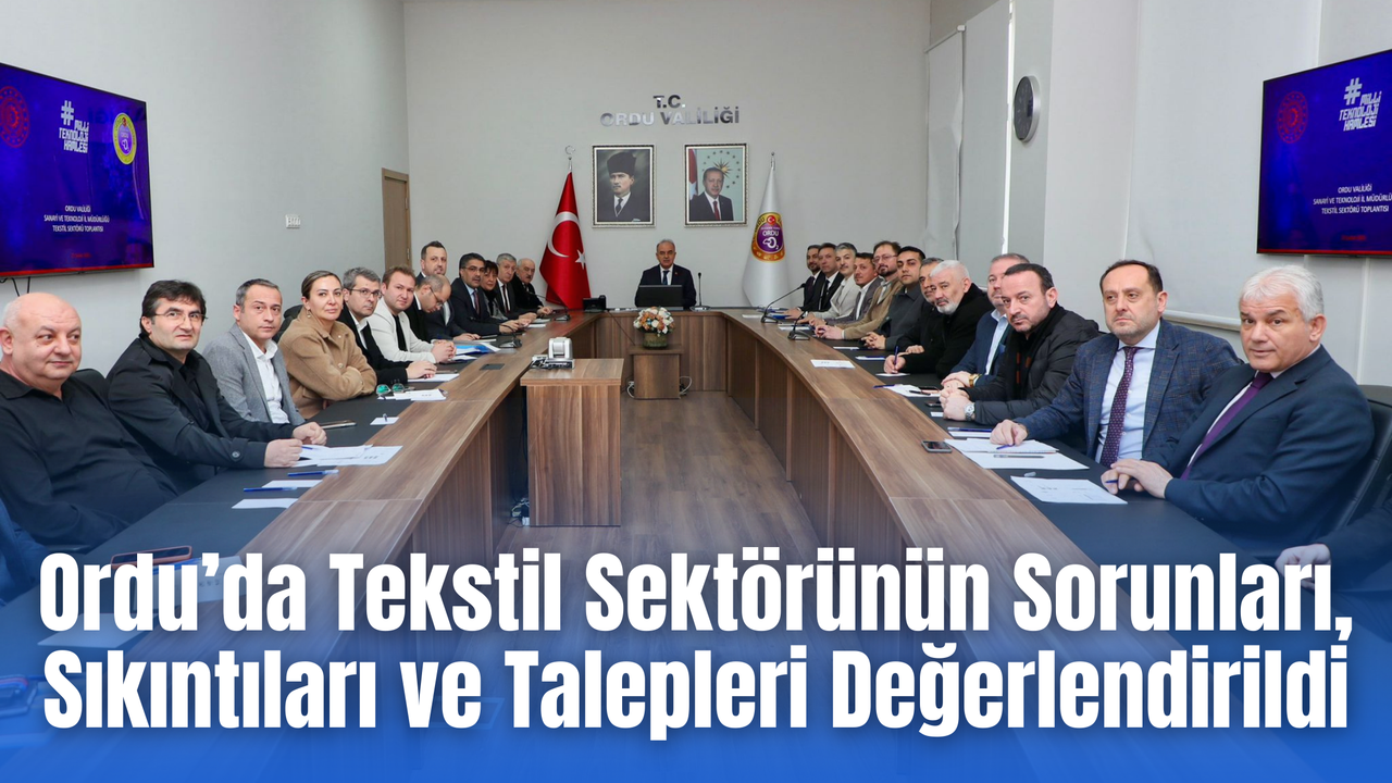 Valilik toplantı salonunda, Vali Muammer Erol’un başkanlığında yapılan Tekstil Sektörü Değerlendirme Toplantısına, Ordu Büyükşehir Belediye Başkan Vekili Celal Tezcan, Sanayi ve Teknoloji İl Müdür Vekili Mustafa Ekinci, İl Çevre Şehircilik ve İklim Değişikliği Müdürü Hüseyin Öztürk, OBB Çevre Koruma ve Kontrol Daire Başkanı Gülderen Aydın, DOKA Ordu İl Koordinatörü Murat Aladağ, Fatsa Belediyesi Özel Kalem Müdürü Fatih Nacak, Ordu OSB Müdürü Olgun Topkaya ile Fatsa ve Altınordu ilçelerinde faaliyet gösteren tekstil işletmelerinin yetkilileri katıldı.