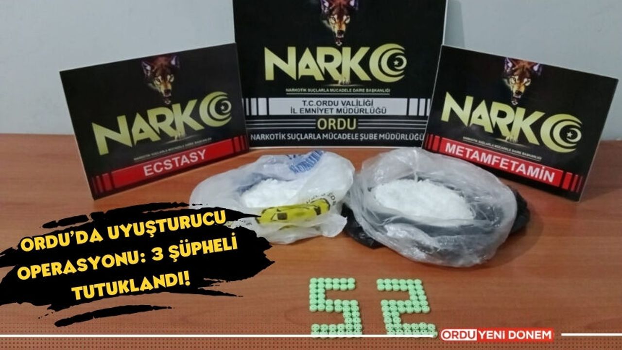 Ordu’da polis ekipleri tarafından uyuşturucu ile mücadele çalışmaları kapsamında yapılan operasyonda 3 şüpheli tutuklandı.