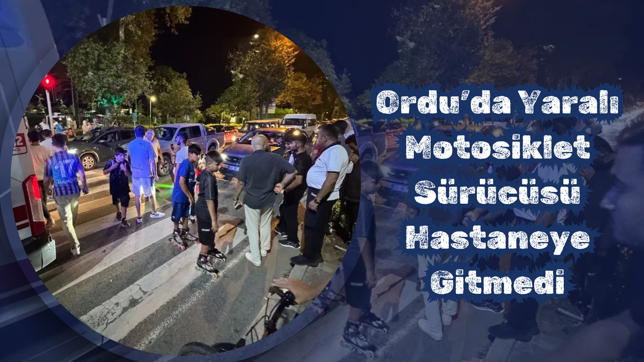 Ordu Büyükşehir Belediyesi binası önünde meydana gelen kazada motosiklet sürücüsü yaralandı. Ancak yaralı, sağlık ekiplerinin tüm çabalarına rağmen hastaneye gitmek istemedi.