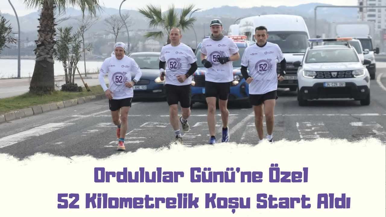 5 Şubat Ordulular Günü etkinlikleri kapsamında, KoşuyORDU Spor Kulübü tarafından organize edilen 52 kilometrelik uzun mesafe koşusu, Fatsa Aybastı Kavşağı’ndan verilen startla başladı.