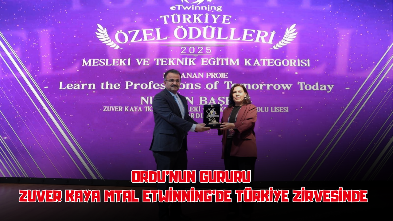 Ordu Zuver Kaya Ticaret Mesleki ve Teknik Anadolu Lisesi, mesleki eğitim alanında Türkiye çapında büyük bir başarıya imza attı. Okul, “Yarının Mesleklerini Bugün Öğrenin” adlı eTwinning projesiyle 2025 eTwinning Türkiye Özel Ödülleri kapsamında Mesleki ve Teknik Eğitim Kategorisi’nde Türkiye birincisi oldu.