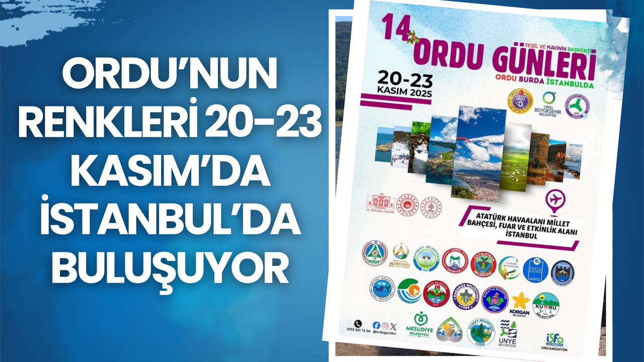 Ordu’nun kültürel zenginliği, yöresel lezzetleri ve geleneksel el sanatları İstanbul’da tanıtılacak. 20-23 Kasım 2025 tarihleri arasında Atatürk Havalimanı Millet Bahçesi Fuar ve Etkinlik Alanı’nda gerçekleştirilecek “Ordu Günleri” etkinliği, hem Orduluları hem de kenti yakından tanımak isteyen ziyaretçileri bir araya getirecek.