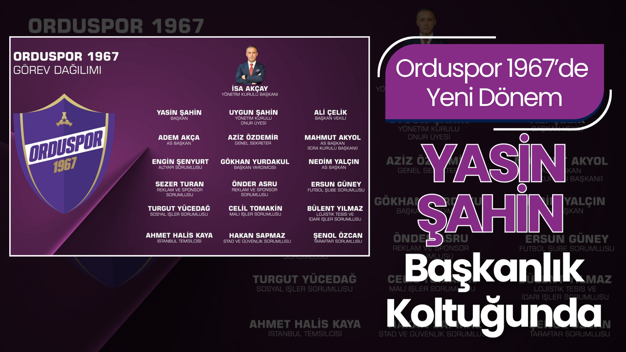 Orduspor 1967’de yönetim kadrosunda önemli bir değişiklik yaşandı. Kulüp başkanlığı görevini yürüten İsa Akçay, bu görevi Yasin Şahin’e devretti. Yeni süreçte kulüp başkanı olarak Yasin Şahin görev alırken, Akçay ise yönetim kurulu başkanlığı sorumluluğunu üstlenecek.