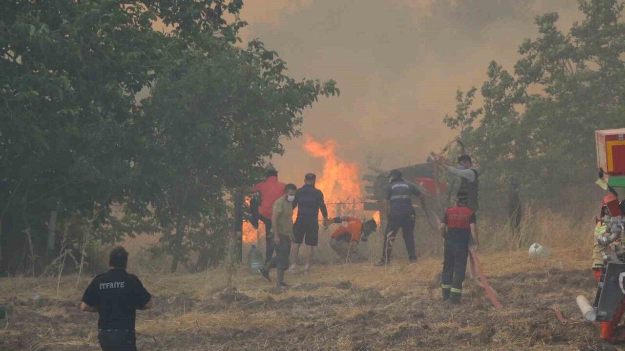 Ekipler ile vatandaşlar yangının evlere sıçramaması için yoğun mücadele veriyor.