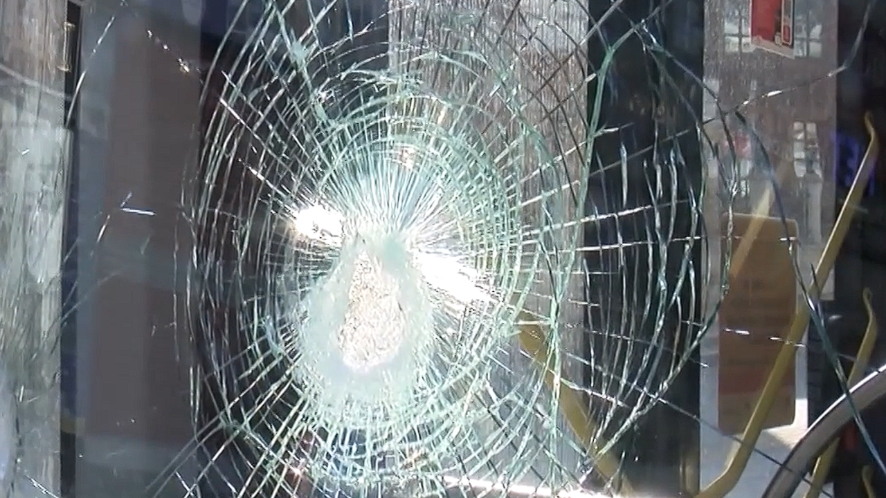 Baltayla otobüsün camını ve aynasını kıran şoförü yolcular sakinleştirmeye çalıştı.