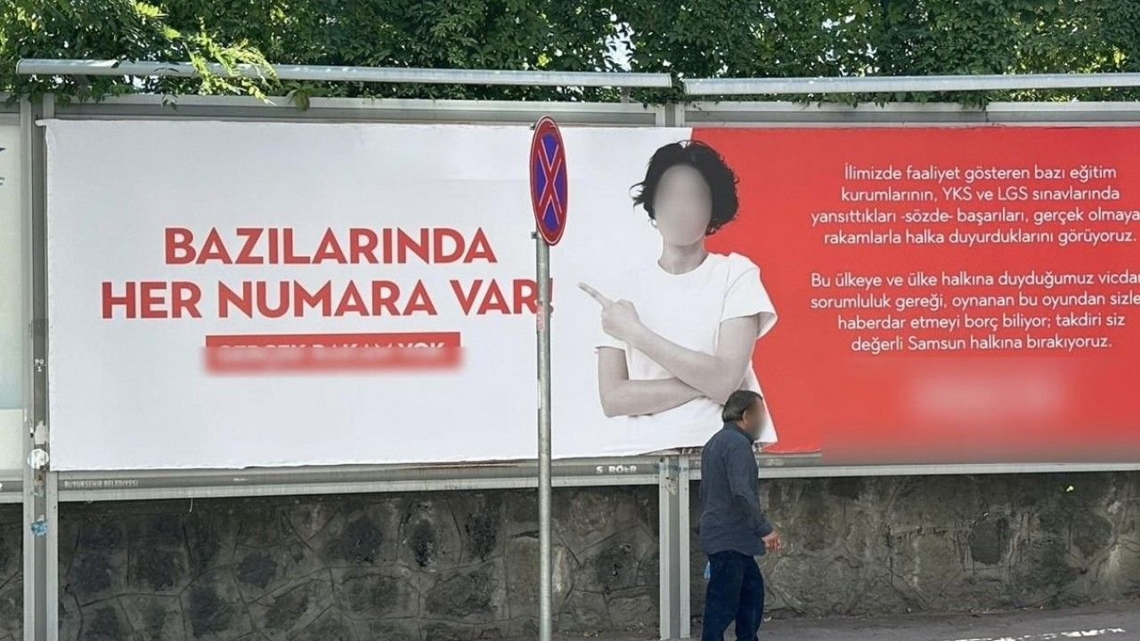 Samsun’daki özel eğitim kurumları arasındaki rekabet, şehir billboardlarına taşındı. Bir kurs, bazı kurumların açıkladığı başarı oranlarının gerçeği yansıtmadığını iddia ederek reklam panoları üzerinden sert tepki gösterdi.