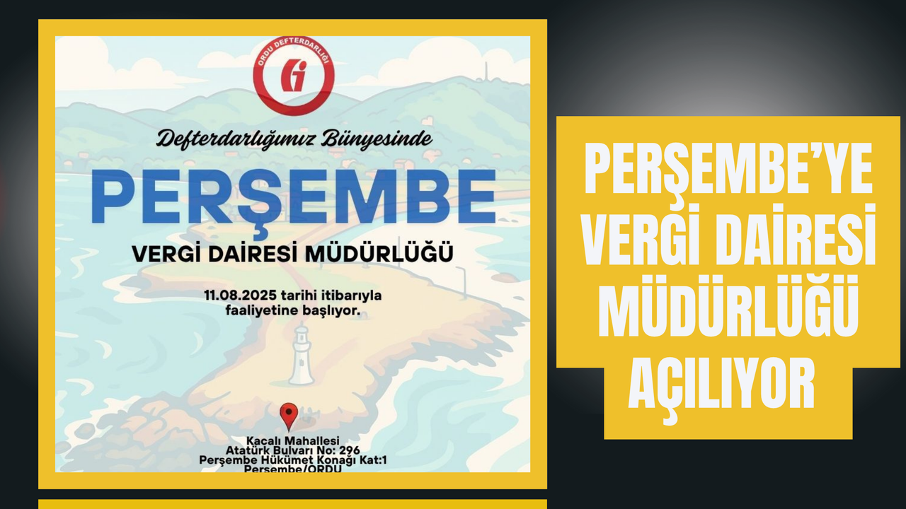Perşembe Vergi Dairesi Müdürlüğü 11 Ağustos 2025 tarihinden itibaren faaliyet vereye hazırlanıyor.