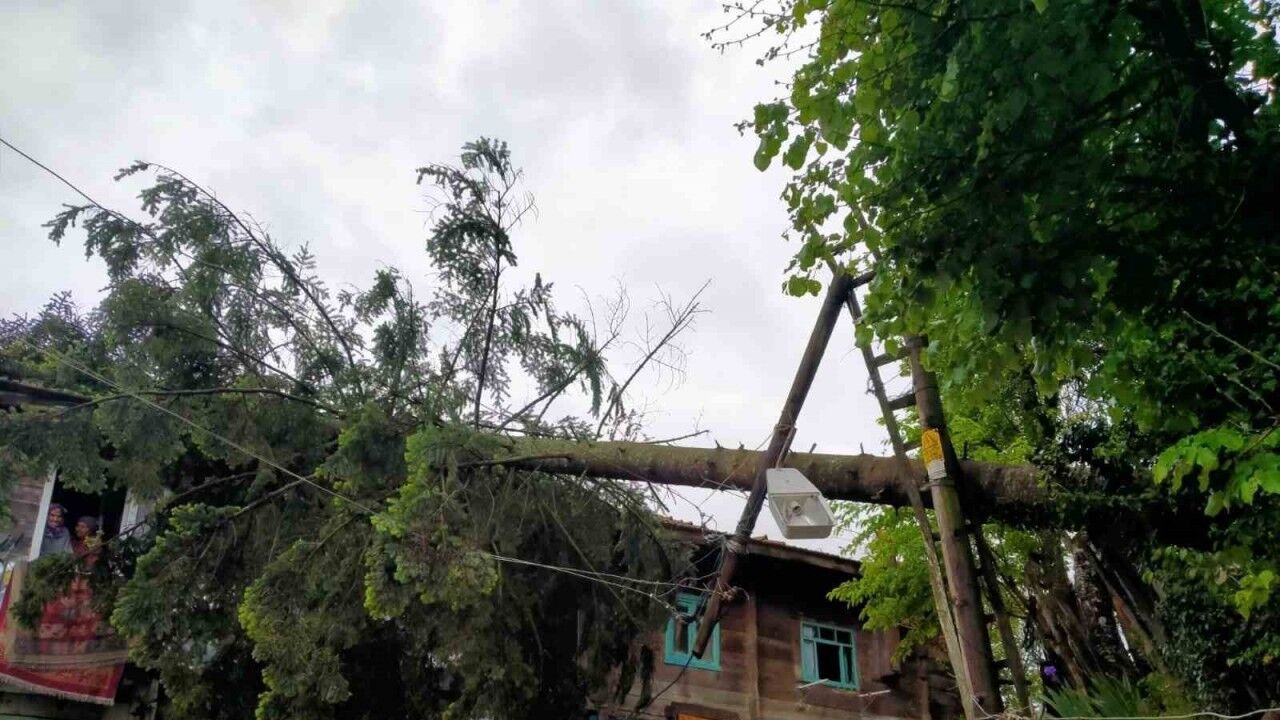 Karabük’ün Yenice ilçesine bağlı Değirmenyanı köyünde şiddetli rüzgar nedeniyle devrilen ağaç, bir evde hasara yol açtı.