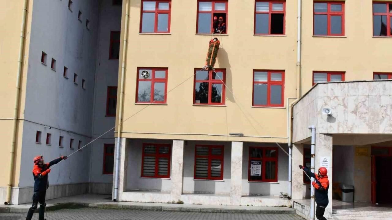 Karabük’ün Safranbolu ilçesinde Atatürk Anadolu Lisesi’nde “deprem tatbikatı” gerçekleştirildi.