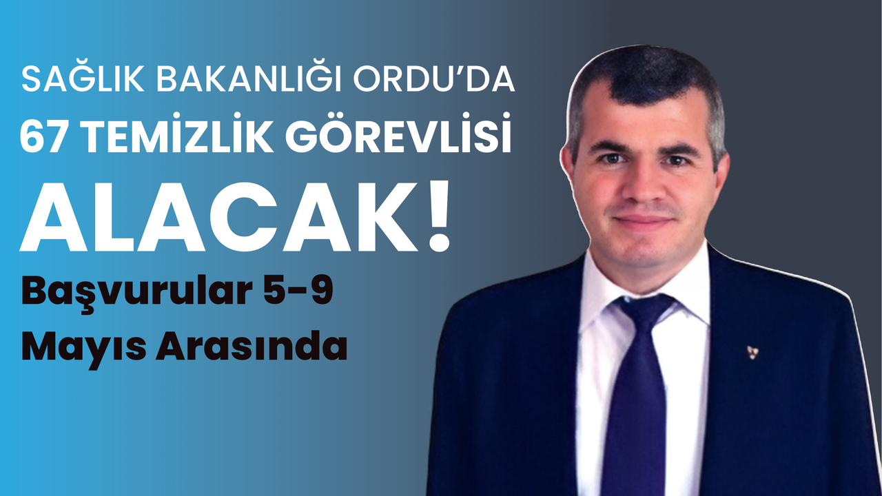 Sağlık Bakanlığı, Ordu genelinde hastanelerde görevlendirilmek üzere 67 daimi temizlik personeli alımı yapacağını duyurdu. İŞKUR Ordu İl Müdürü İsa Kaymak, başvuruların 5 Mayıs 2025 Pazartesi günü saat 00.01’de başlayacağını ve 9 Mayıs 2025 Cuma günü saat 23.59’da sona ereceğini açıkladı.
