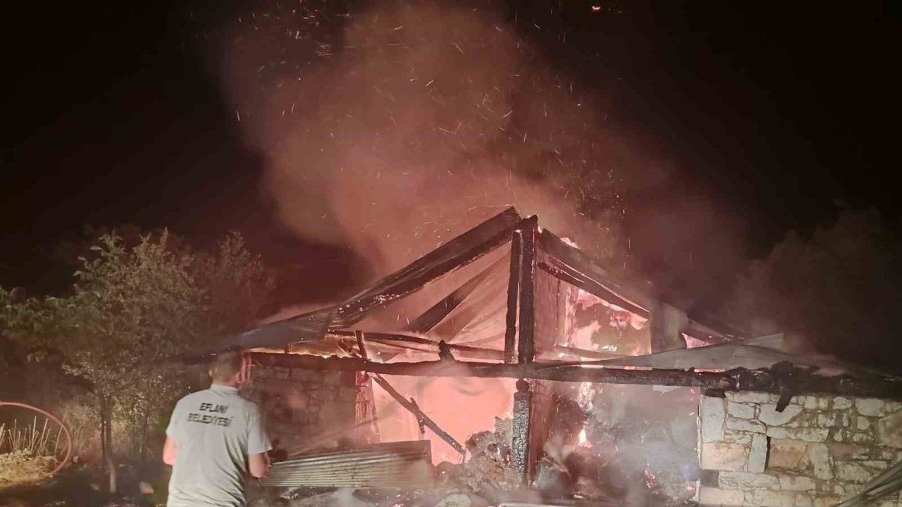 Eflani Belediyesi itfaiye ekiplerinin müdahalesiyle yangın kontrol altına alındı, ancak samanlık tamamen yanarak kül oldu.