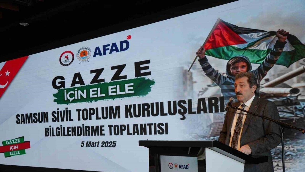 Samsun Valisi Orhan Tavlı, "Tüm zorluklara rağmen vatanlarını müdafaa eden, zulme baş eğmeyen ve onuruyla direnen Filistinli kardeşlerimize uzatacağımız yardım eliyle Gazze’yi Ramazan ayında da yalnız bırakmayacağız" dedi.