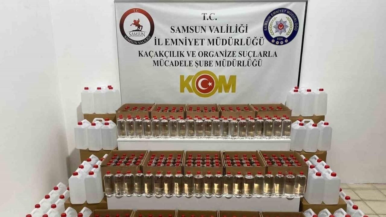 Samsun’da polis tarafından düzenlenen operasyonunda 1 ton etil alkol ve makaron ele geçirildi.