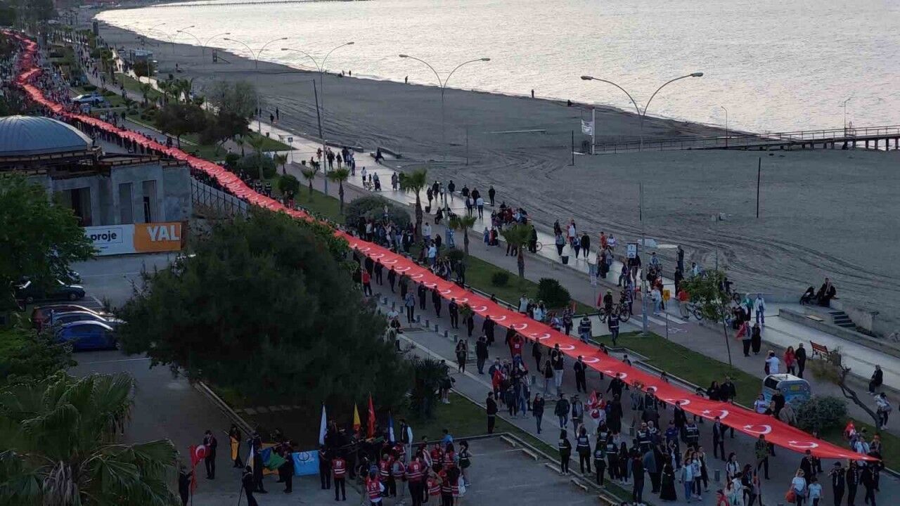 Samsun’da Atatürk’ün 19 Mayıs 1919’da Samsun’a çıkışının yıl dönümü dolayısıyla 1919 metre uzunluğundaki dev bayrakla yürüyüş düzenlendi.
