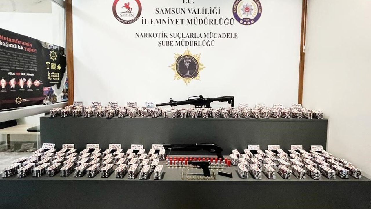 Edinilen bilgiye göre, Samsun Cumhuriyet Başsavcılığı koordinesinde uyuşturucu ile mücadele kapsamında çalışma yapan Samsun Emniyet Müdürlüğü Narkotik Suçlarla Mücadele Şube Müdürlüğü ekipleri, yaptıkları takip ve çalışmalar sonucu İlkadım İlçesi Unkapanı Mahallesi’nde bulunan C.Y.’nin evine operasyon düzenledi. Yapılan aramalarda 25 bin 357 adet sentetik ecza, 1 adet ruhsatsız tabanca, 2 adet ruhsatsız tüfek, 22 adet tabanca fişeği ve 43 adet tüfek kartuşu ele geçirildi. Olayla ilgili C.Y. gözaltına alındı.