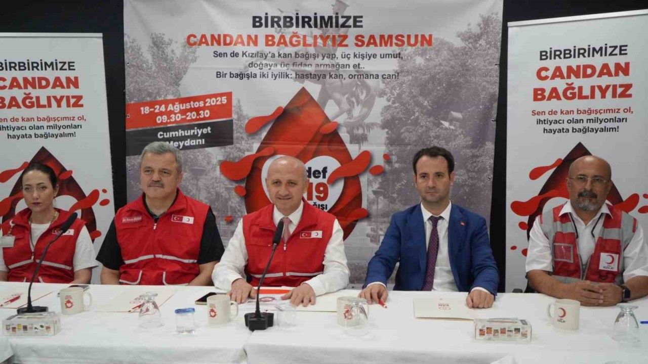 Türk Kızılay Samsun, hem kan ihtiyacına çözüm bulmak hem de doğaya katkı sağlamak amacıyla "Hedef 1919: Hastaya Kan, Ormana Can" kampanyasını başlatıyor. 18-24 Ağustos tarihleri arasında Cumhuriyet Meydanı’nda düzenlenecek etkinlikte, her kan bağışçısı adına 3 fidan dikilecek.
