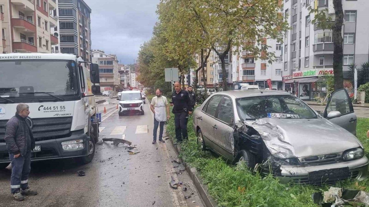Kaza, Samsun’un Tekkeköy ilçesi 19 Mayıs Mahallesi Şeyh Zeynettin Caddesi’nde meydana geldi. Halil Korkmaz idaresindeki 06 DMK 482 plakalı otomobil, Çetin Topçu yönetimindeki 55 TB 146 plakalı Tekkeköy Belediyesine ait çöp kamyonuna çarptı. Çarpmanın etkisiyle otomobil yoldan çıkarak refüjün ortasında durabildi. Kazada yaralanan sürücü Halil Korkmaz, Gazi Devlet Hastanesine kaldırılarak tedavi altına alındı. Polis kazayla ilgili inceleme başlattı.