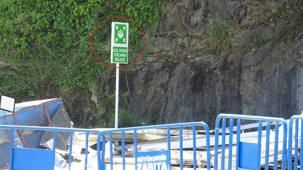 Samsun’da 2’si çocuk 3 kişinin hayatını kaybettiği heyelan faciasında, olay yerinde bulunan "Acil Durum Toplanma Bölgesi" tabelası dikkat çekti.