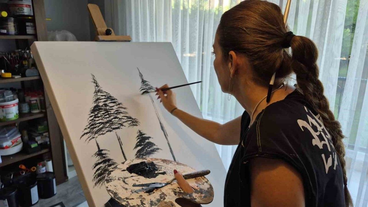 Ortaokul çağlarında resimle tanışan ancak sonrasında ara vermek zorunda kalan Aslıhan Öztürk (51), uzun yıllar sonra yeniden yağlı boya, sulu boya ve kara kalem çalışmalarına başladı. Öztürk, çocuklarının hediye ettiği boyalarla, 24 yılın ardından sanat dünyasında yeniden adım attı. Geçtiğimiz yıl Bodrum ve İstanbul’da kişisel sergiler açan, sanat fuarlarına katılan ve çeşitli illerde karma sergilerde eserleri yer alan Öztürk, şimdi de kişisel sergisini memleketi Düzce’de açmanın heyecanını yaşıyor.