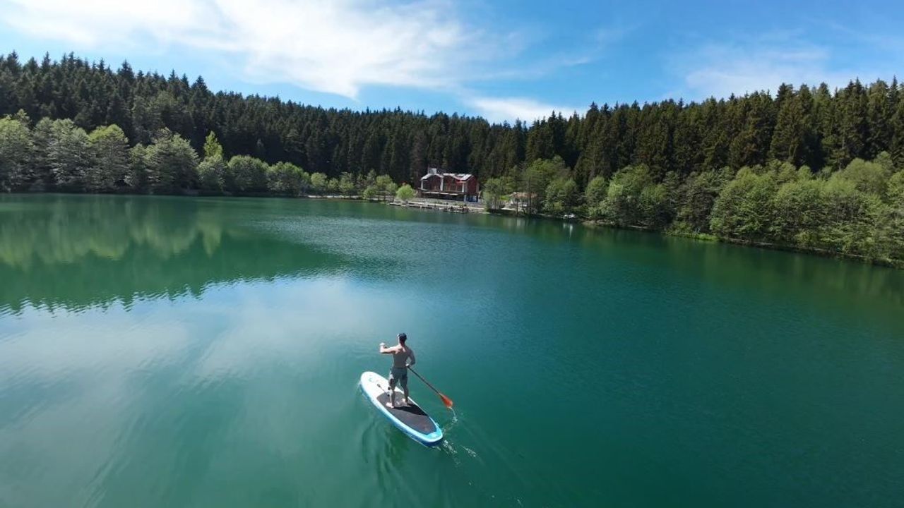 Kürek sörfü anları, FPV drone kamerasıyla havadan görüntülendi. Etkinlik, hem sporun yaygınlaştırılması hem de Karagöl’ün tanıtımı açısından renkli görüntülere sahne oldu.