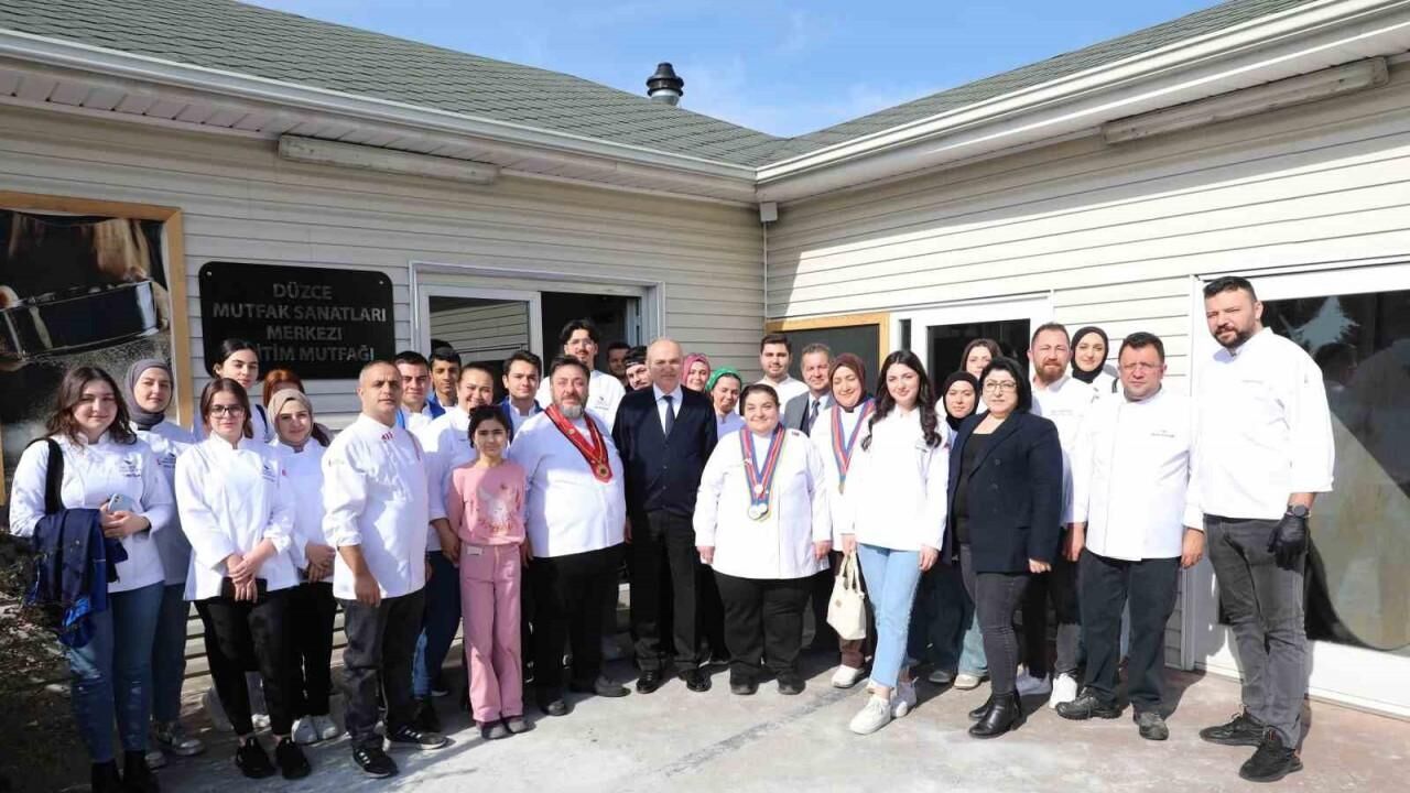 Düzce Belediyesi, şehrin gastronomi zenginliğinin en güzel yansıma noktalarından biri olan Mutfak Sanatları Merkezi’nde önemli bir organizasyona ev sahipliği yaptı. Başkan Faruk Özlü’nün ev sahipliğinde Düzce’ye gelen Kırıkkale’den Executive Chef Hüseyin Şipal, İstanbul Gedik Üniversitesi Gastronomi Bölüm Başkanı Öğretim Üyesi Huriye Zafera ve birçok ilden gastronomi uzmanı şefler kendi yöresel mutfaklarından reçeteleri Düzce Üniversitesi Gastronomi öğrencileri ile paylaştı, workshop kapsamında yemekler yaptı.