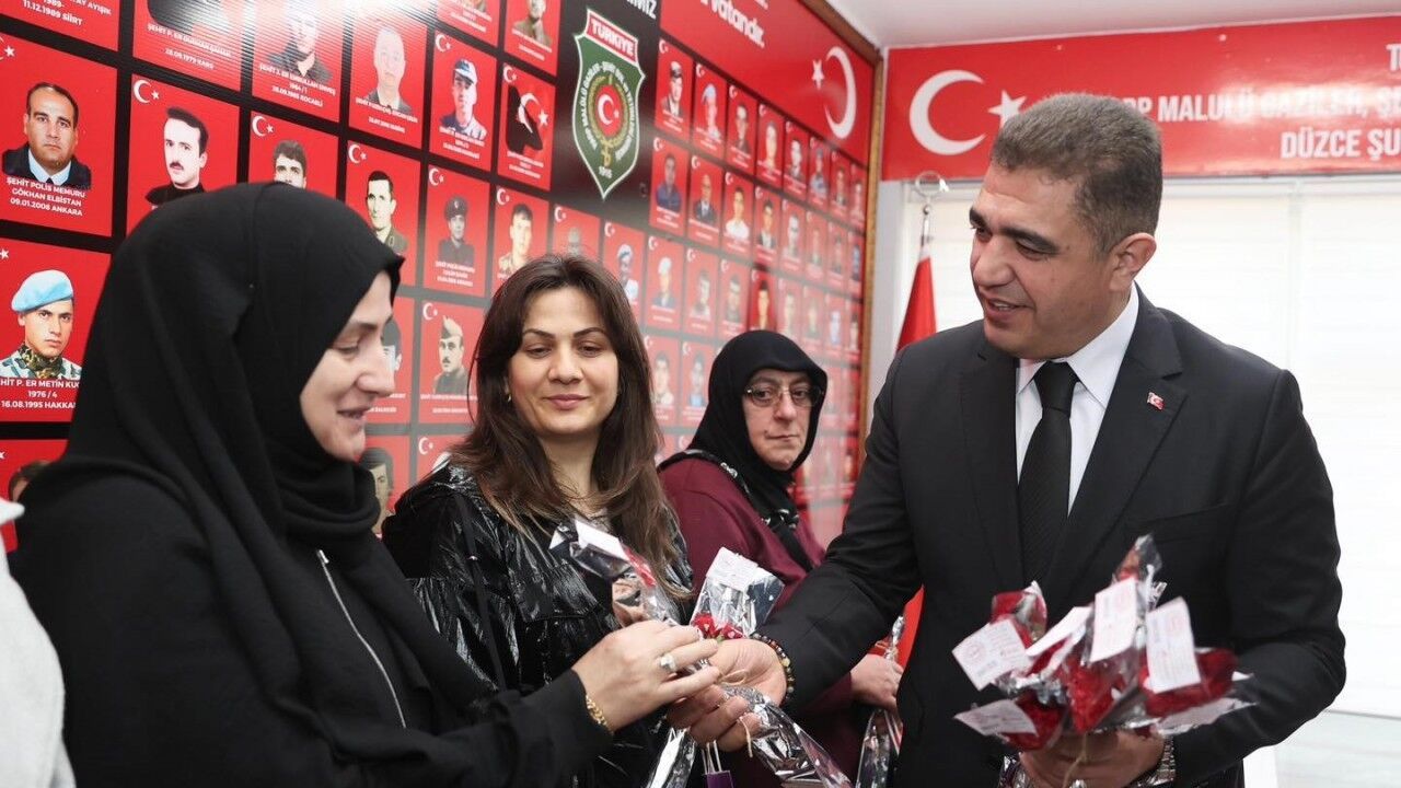 8 Mart Dünya Emekçi Kadınlar Günü tüm yurtta olduğu gibi Düzce’de de çeşitli etkinliklerle kutlanıyor. Düzce Valisi Selçuk Aslan, eşi Pınar Aslan ile birlikte 8 Mart Dünya Emekçi Kadınlar Günü vesilesiyle şehitlerimizin ve gazilerimizin anneleri ile eşleriyle bir araya geldi. Türkiye Harp Malulü Gaziler, Şehit Dul ve Yetimleri Derneği Düzce Şubesi’nde Kur’an-ı Kerim tilaveti okunarak, şehitlerimiz ve gazilerimiz için dualar edildi.