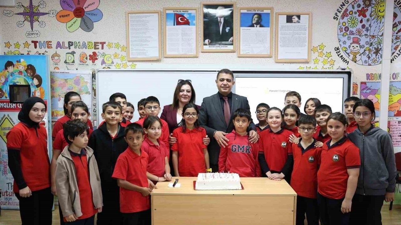 Sınıf başkanı Cinel de, "Vali amcamıza geldiği için teşekkür ederiz, sözümü yerine getirdiğim için mutluyum." dedi.