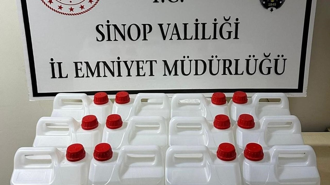 Sinop’ta 60 litre etil alkol ele geçirildi, 1 şüpheli şahıs hakkında yasal işlem başlatıldı.