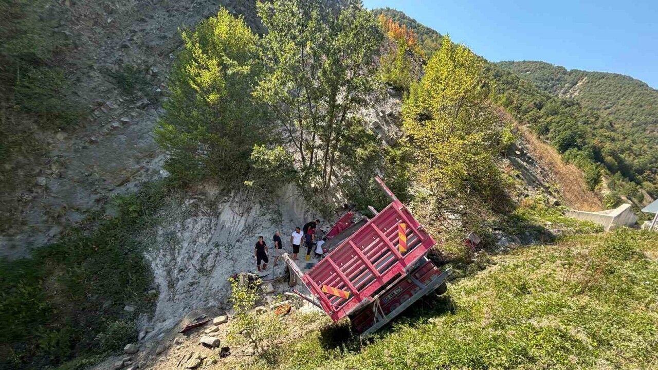 Sinop’ta freni boşalan kum yüklü kamyonun şarampole uçtuğu kazada sürücü hayatını kaybetti.